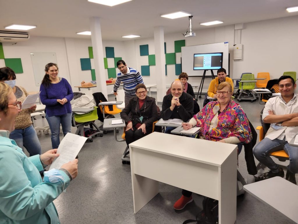 Las docentes Marcela Agulló, Mariana Ornique y María José Sabelli comparten una experiencia de trabajo en la asignatura Evaluación de los aprendizajes.